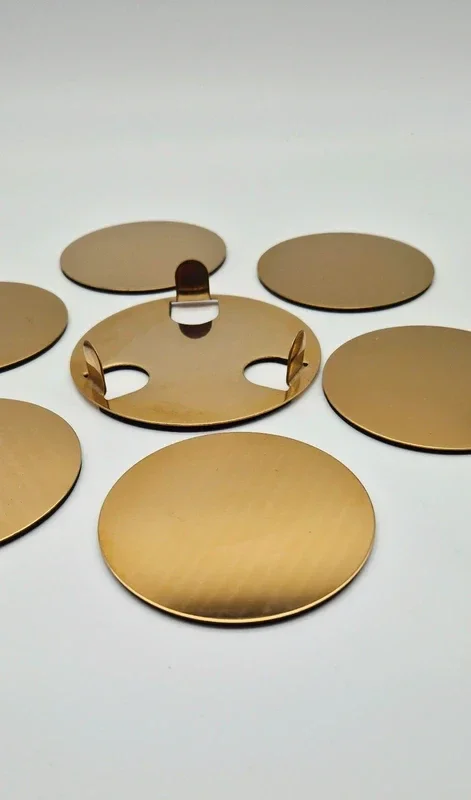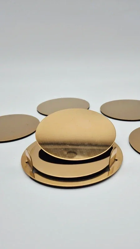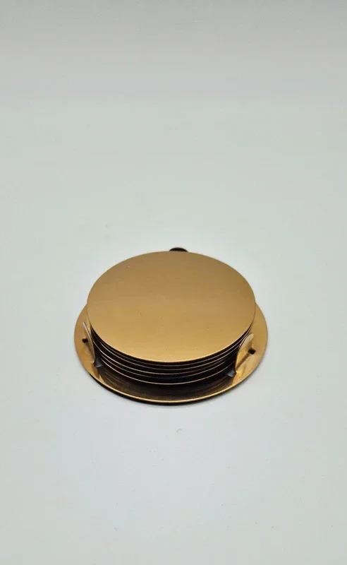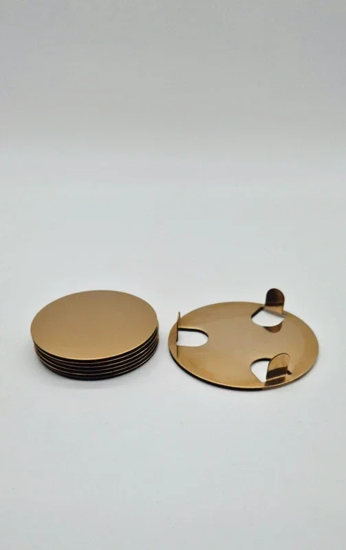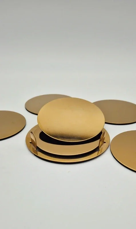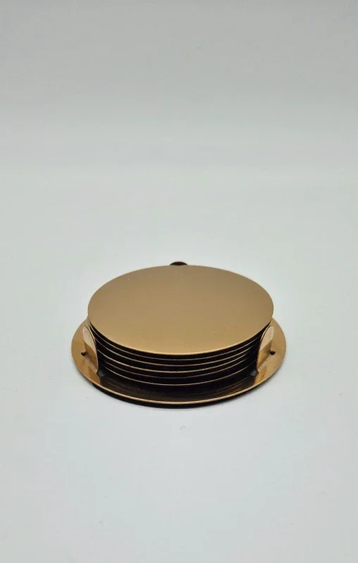 Prachtige onderzetters set met houder. Messingkleurig