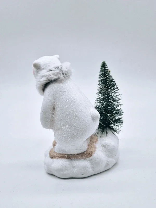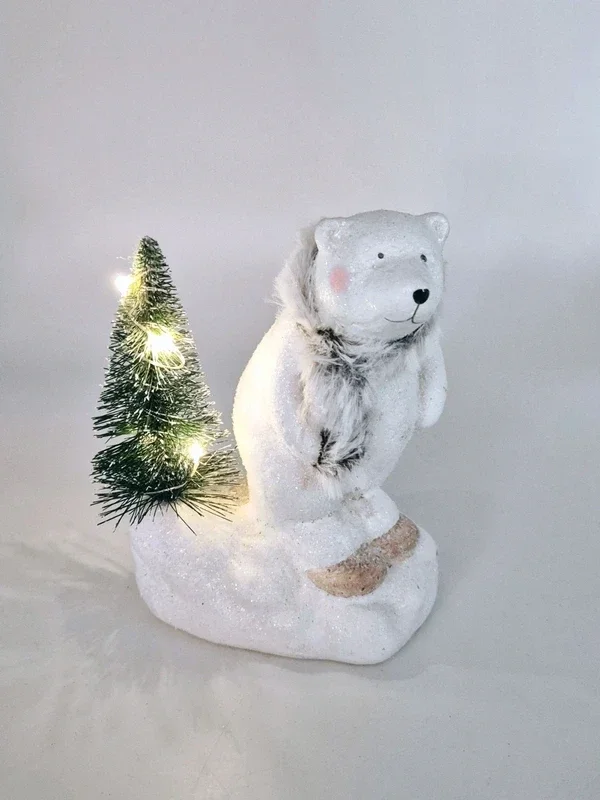 Schattige kerstdecoratie: een ijsbeer met een besneeuwde kerstboom. Werkt op batterijen.