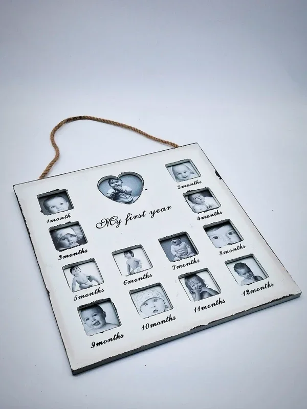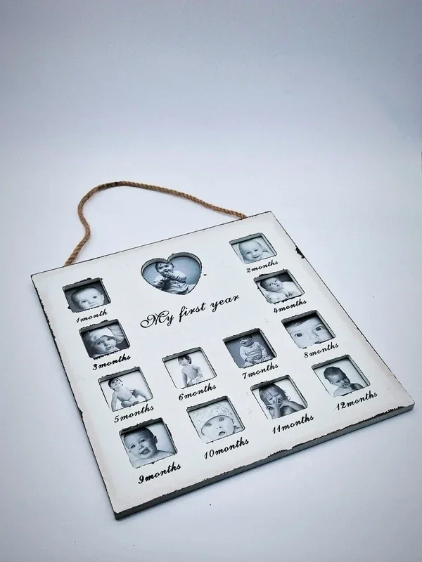 Fotolijst voor foto's van het eerste jaar van uw kind of kleinkind. Iedere maand een foto! Om een mooie herinnering te bewaren en te laten zien!