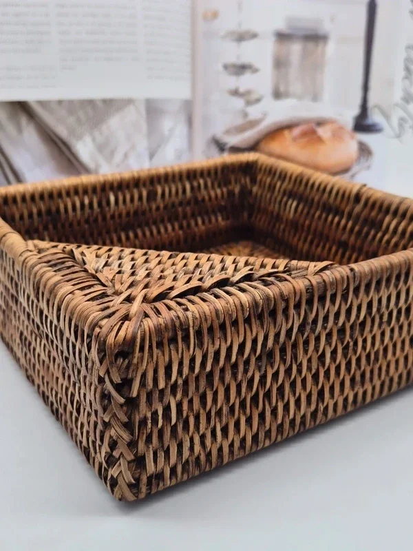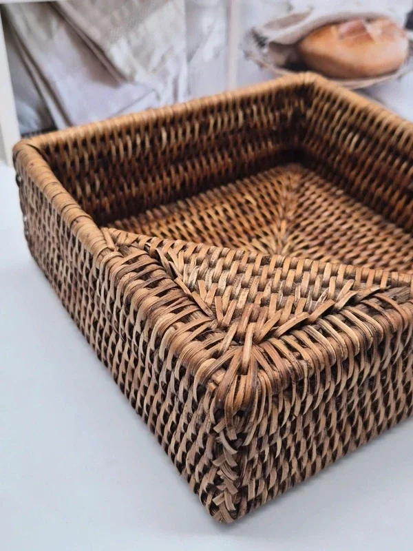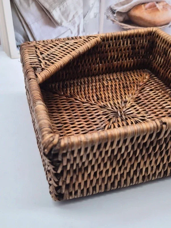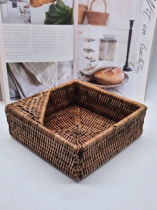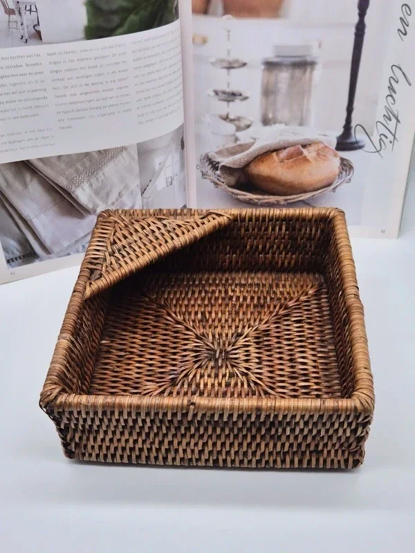 Mooie vierkante rotan servethouder van het merk Caspari, in de kleur Dark Natural.