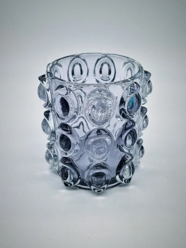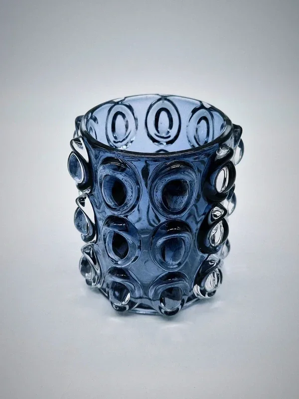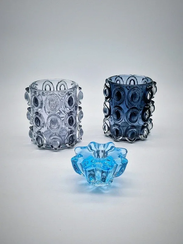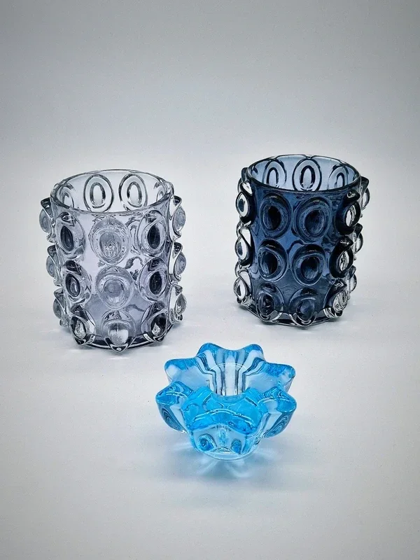 Prachtige set van drie kaarsenhouders in paars en donkerblauw.