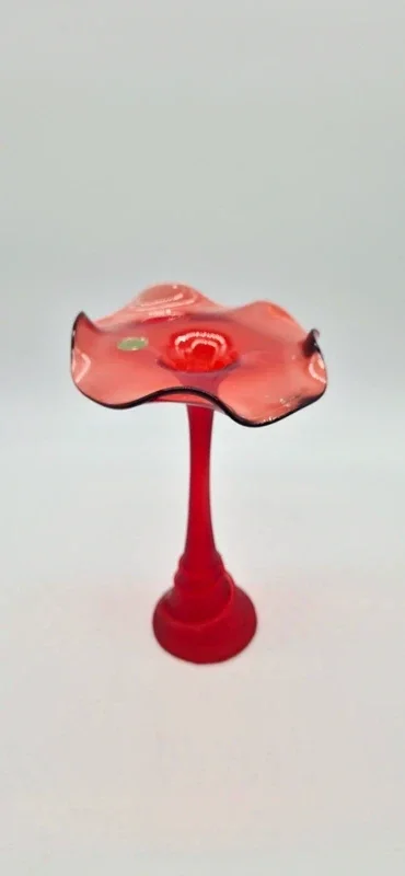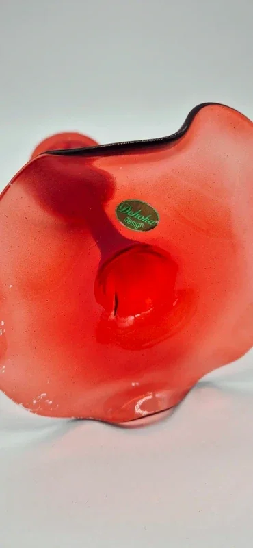 Prachtige vintage ruby-rode glazen vaas van Dehora Design, model Canterbury.