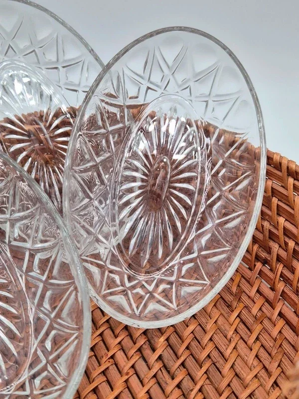 Prachtige set van vintage glazen schaaltjes, perfect voor het serveren van kleine gerechten, bijgerechten of heerlijke desserts.