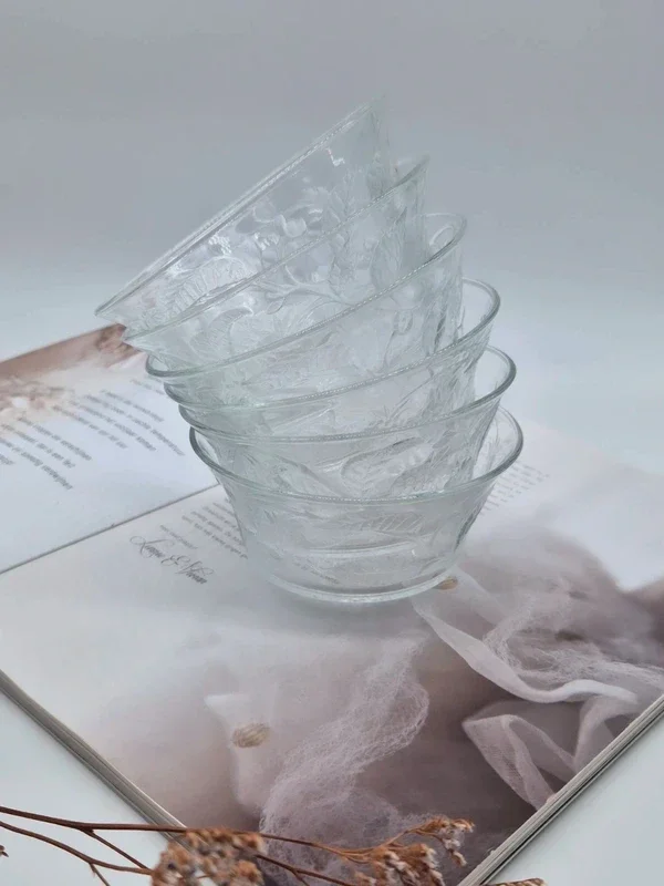 Set van 6 vintage glazen schaaltjes van Arcoroc France, waarschijnlijk uit de jaren 70eh.