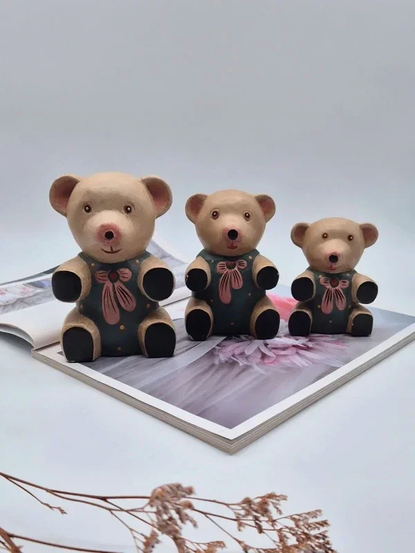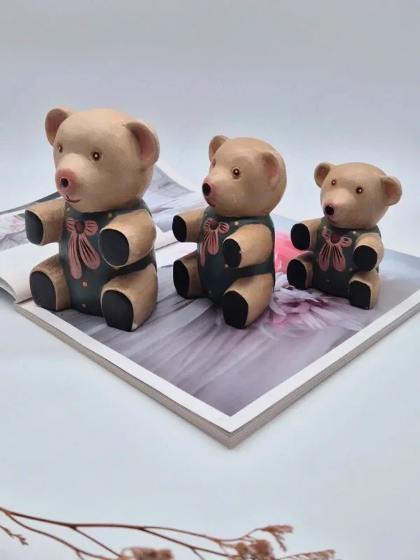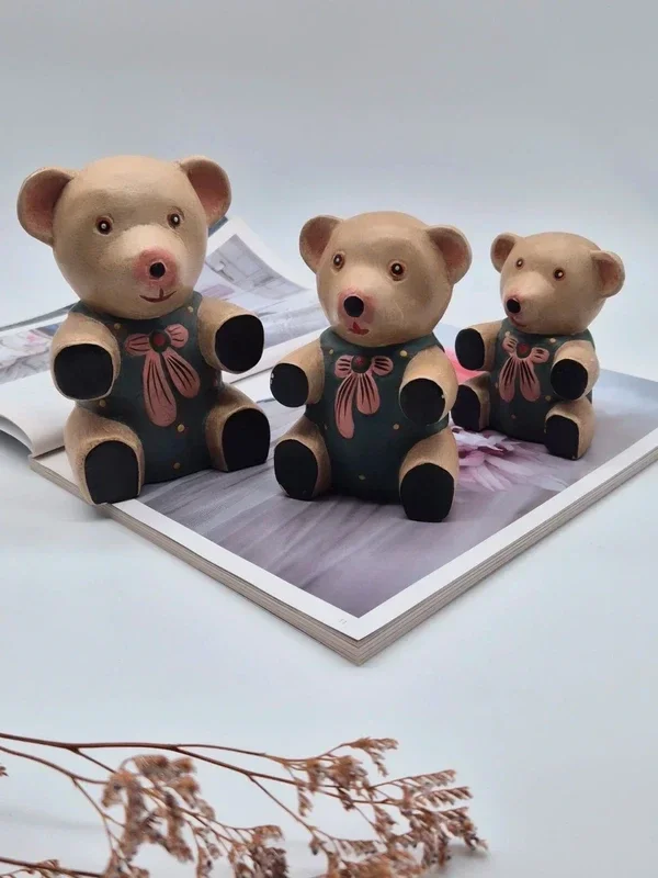 Deze schattige vintage Teddyberen zijn met de hand gesneden uit hout en hebben een unieke vintage uitstraling.