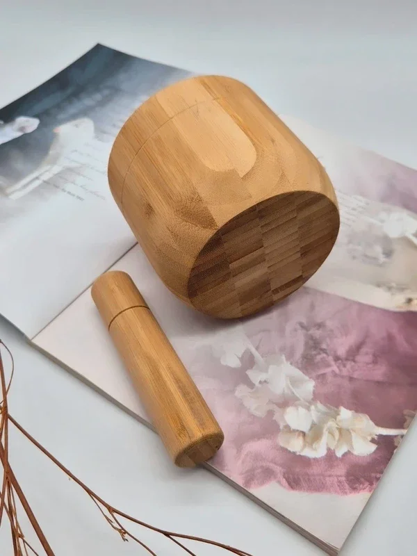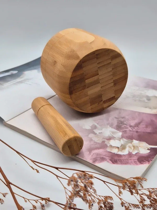 Vijzel met stamper van bamboe hout
