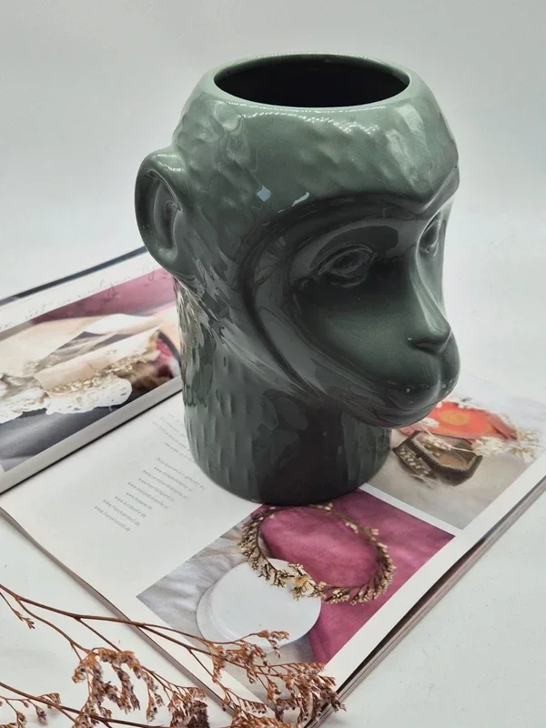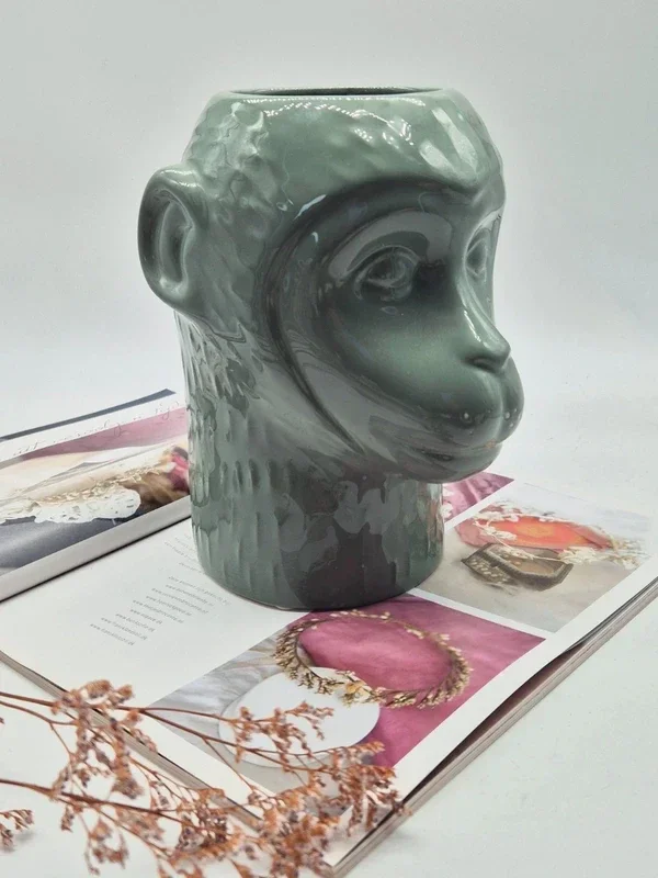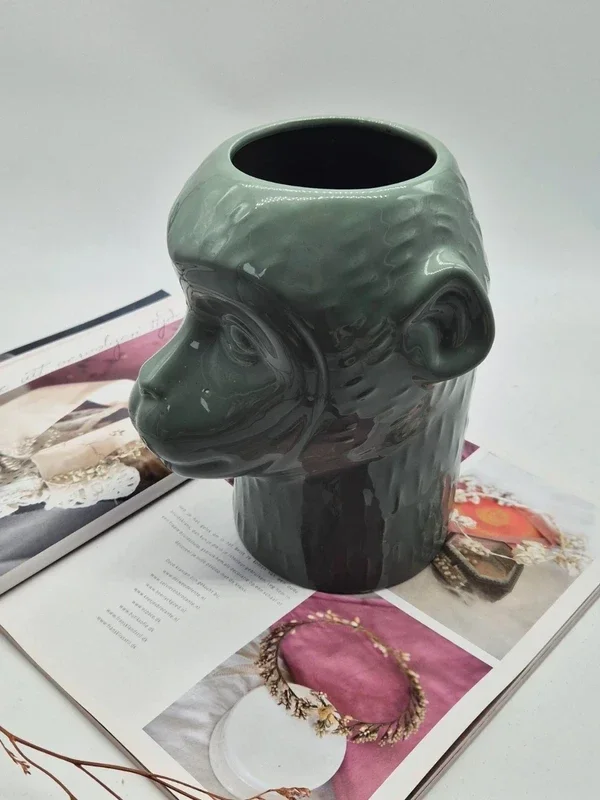 Deze unieke bloempot in de vorm van een apenhoofd is een echte eyecatcher.