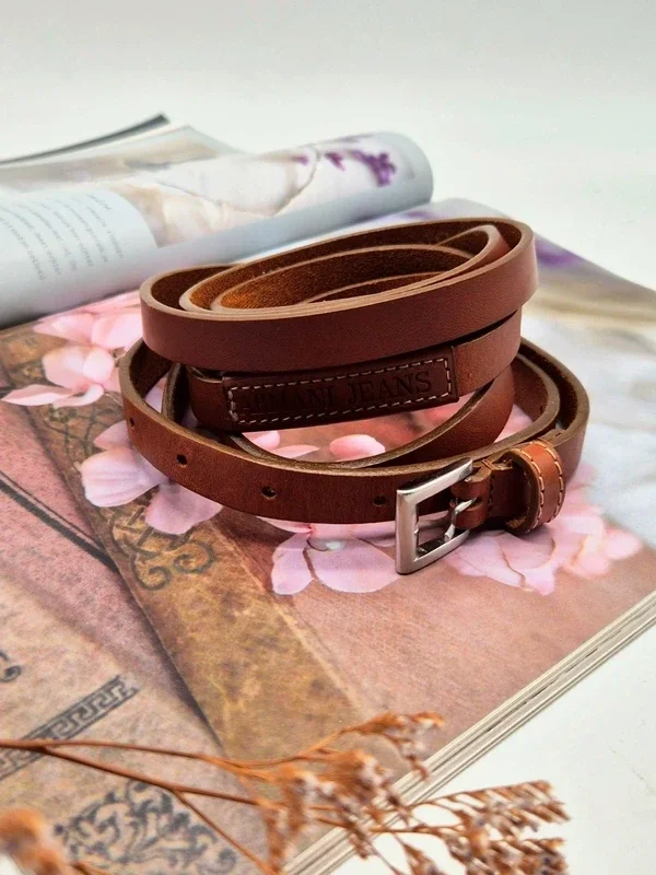 Prachtige bruine leren riem van het merk Armani Jeans.