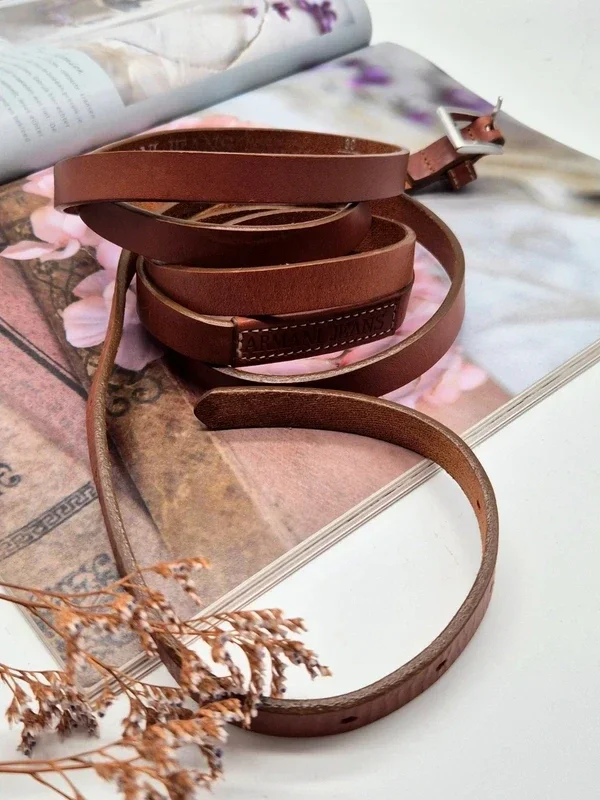 De riem is 2 meter lang en 2 cm breed, waardoor hij op verschillende manieren gedragen kan worden.