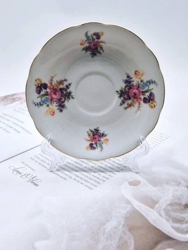 De schotel zijn gedecoreerd met Meissen boeketten en hebben een gouden randje.