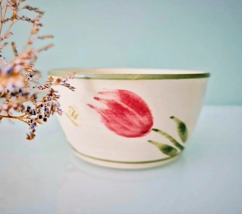 Mooie bloempot met handgeschilderde tulpen.