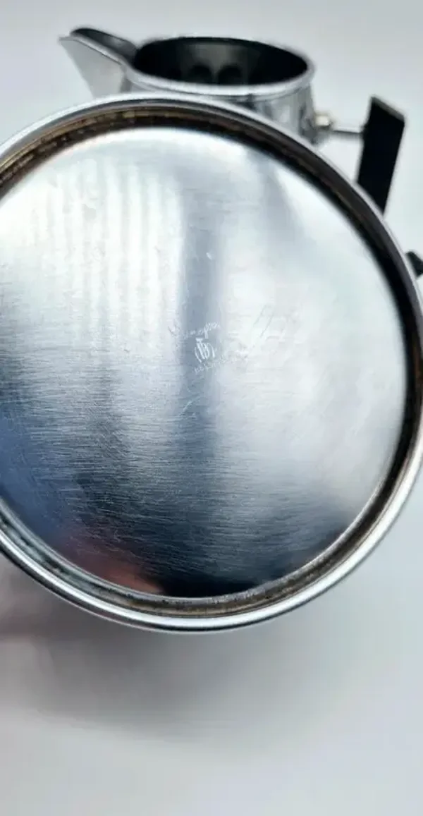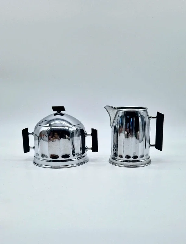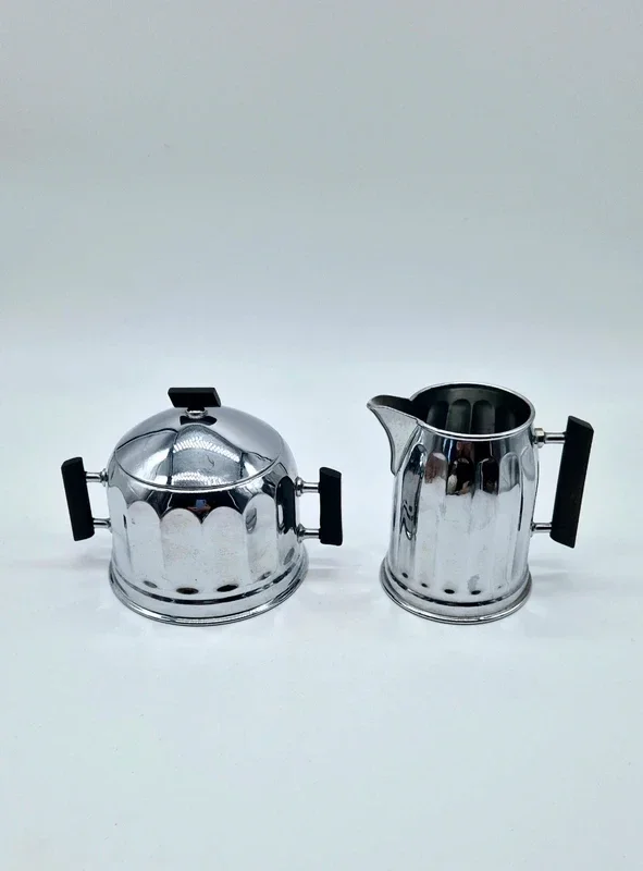 Vintage Demeyere suikerpot met deksel en bijpassende melkkan.