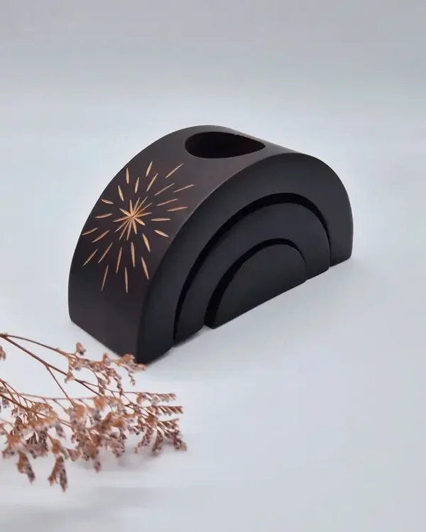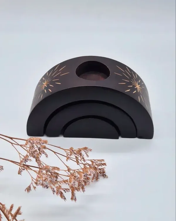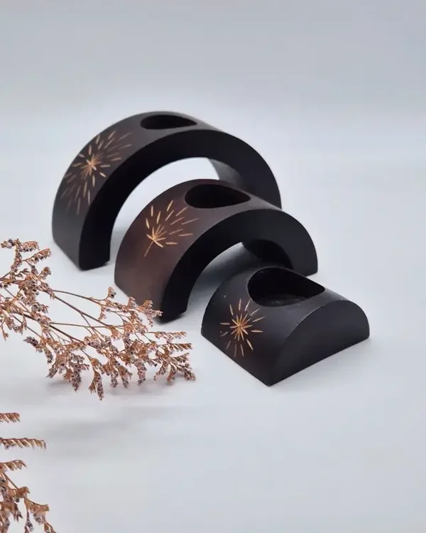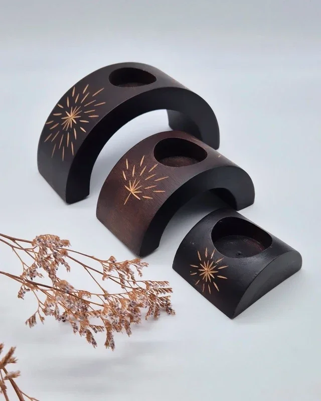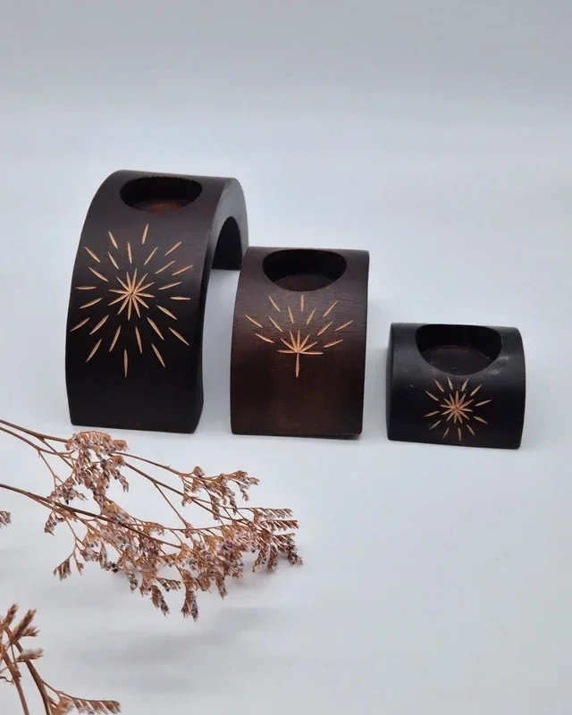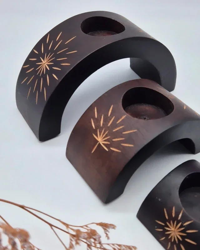 Prachtige houten etnische kaarsenhouders.