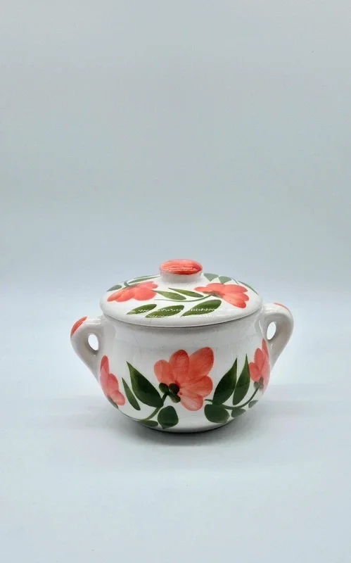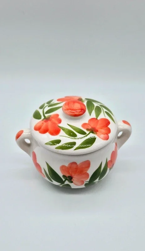 Prachtige handgeschilderde keramische stoofpot met bloemmotief.