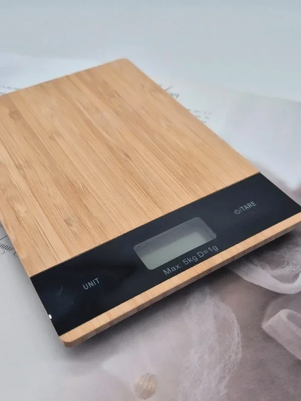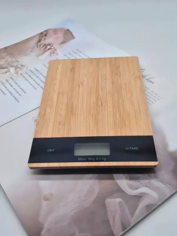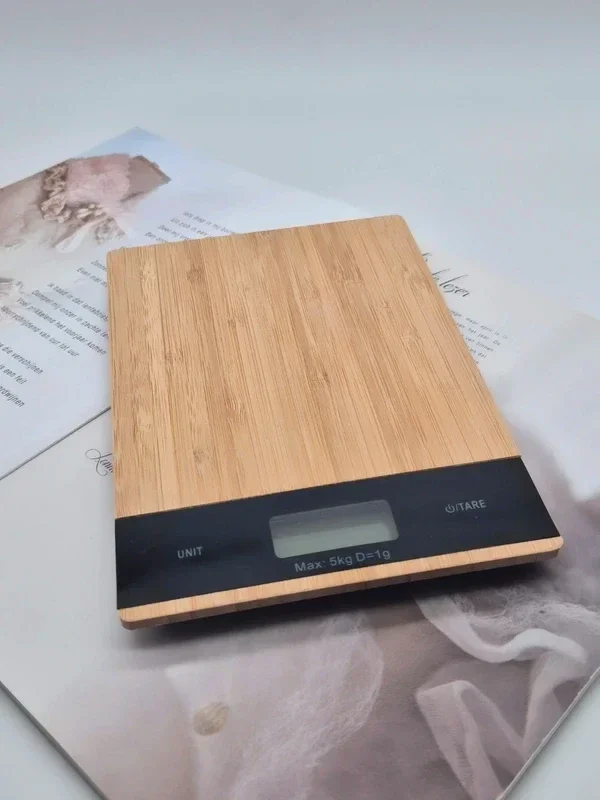 Deze digitale keukenweegschaal is gemaakt van bamboe en heeft een maximale capaciteit van 5 kg. De nauwkeurigheid is 1 gram.