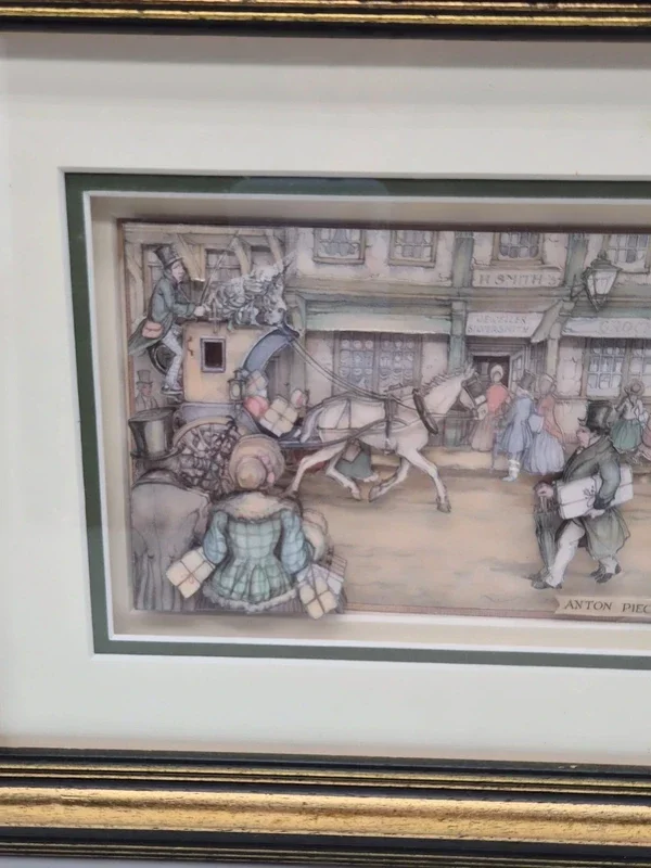 Prachtige ingelijst werk van Anton Pieck. 3D diorama.