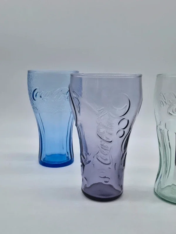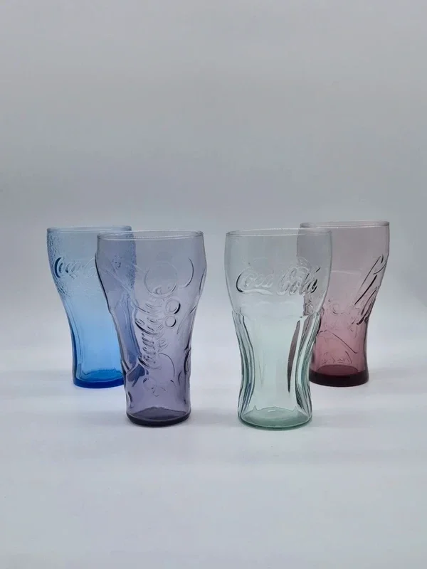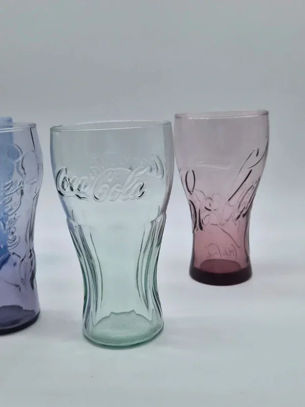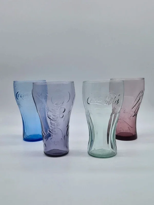 Set van 4 originele Coca-Cola glazen in verschillende kleuren.