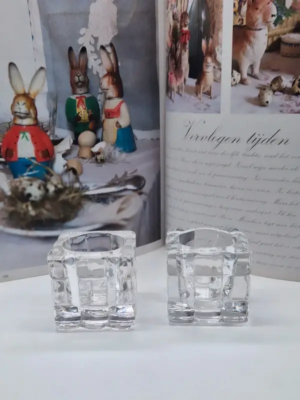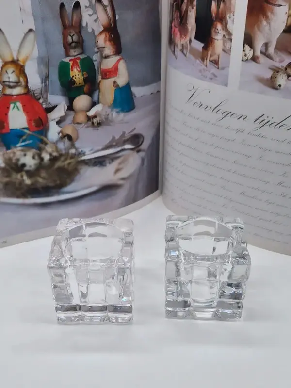 Set van 2 glazen theelichthouders met een modern, blokvormig ontwerp.