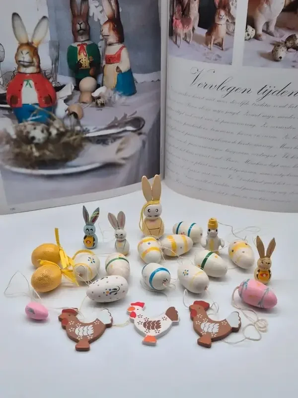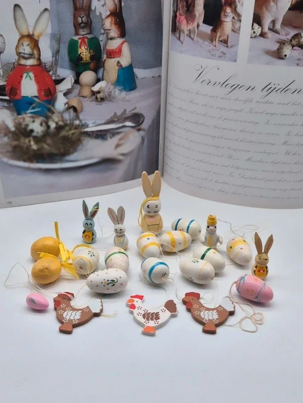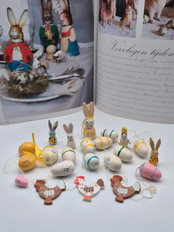 Vintage houten paasversieringen. Handbeschilderd. Afkomstig uit Duitsland (Erzgebirge).