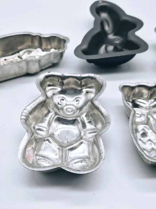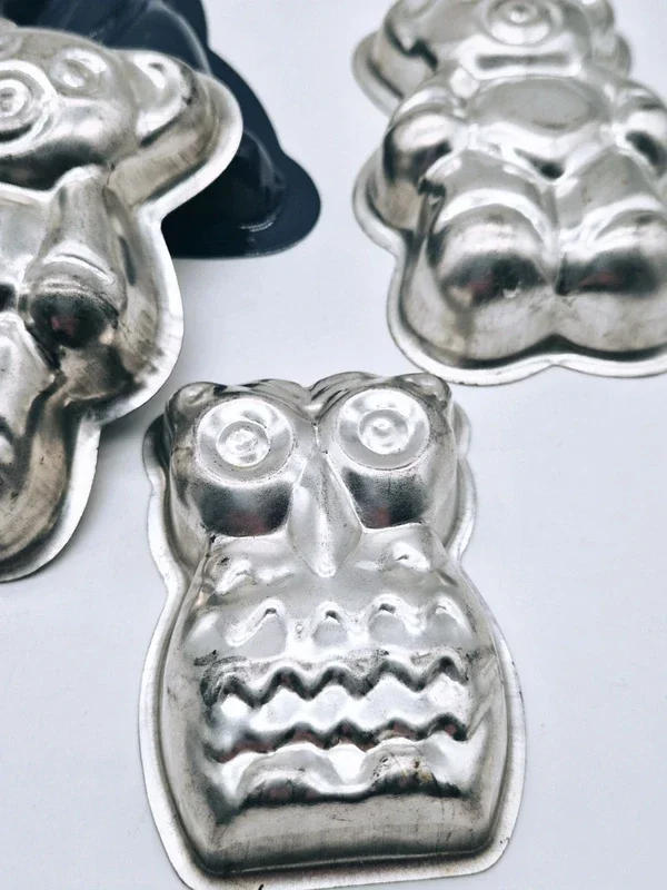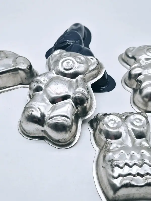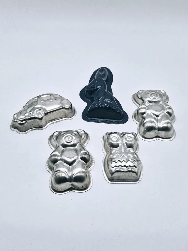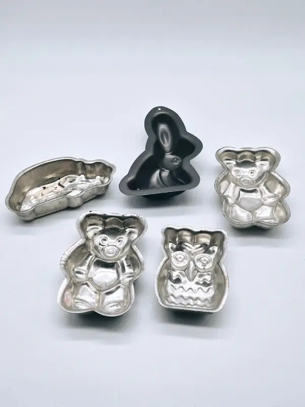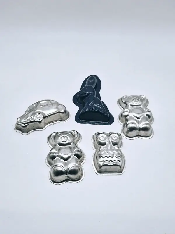 Bakvormen bestaat uit verschillende vormen, waaronder een auto, een konijn, een uil en twee teddyberen.