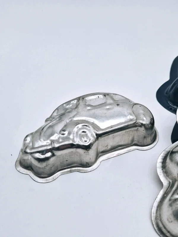 Vintage metalen bakvormen, ook wel cakeblikken of chocolademallen genoemd.