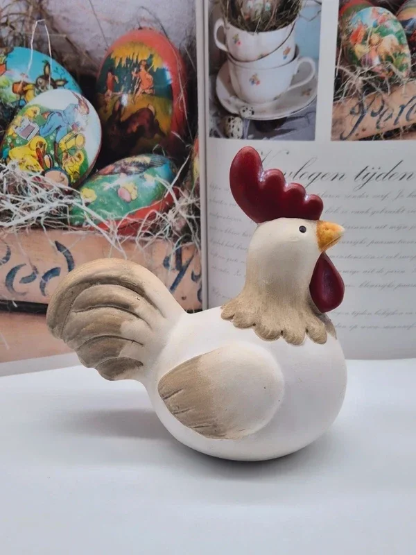 Charmante decoratieve haan is een populair item voor een landelijk interieur, vaak gebruikt als paas- of tafeldecoratie.